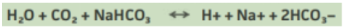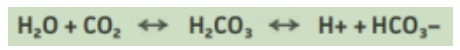 In the culture media, dissolved CO₂ is in equilibrium with bicarbonate ions. Many media use the CO₂/bicarbonate buffer system to maintain the pH. CO₂ dissolves in the media and reacts with water to form carbonic acid. As cell metabolism produces more CO₂, the reaction shifts to the right, lowering the pH of the medium.